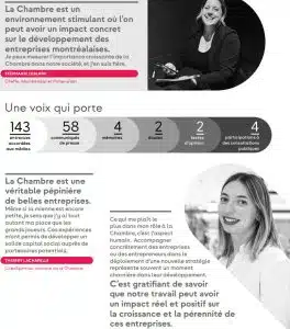 « La Chambre est une véritable pépinière de belles entreprises. Même si la mienne est encore petite, je sens que j’y ai tout autant ma place que les grands joueurs. Ces expériences m’ont permis de développer un solide capital social auprès de partenaires potentiels. »